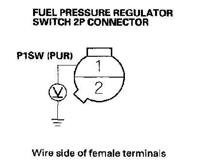 10. Measure voltage between fuel pressure regulator switch 2 P connector terminal No.1 and body ground.