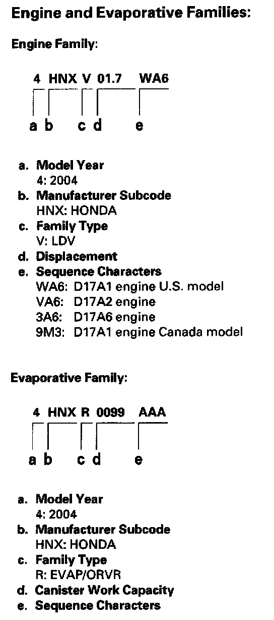 Engine And Evaporative Families: