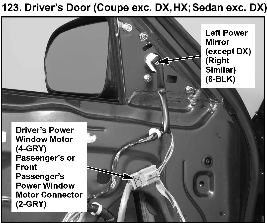 123. Driver's Door (Coupe Exc. DX, HX; Sedan Exc. DX):