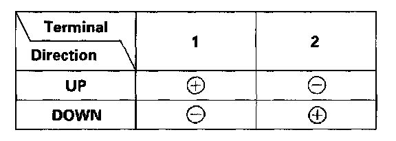 3. Test the motor in each direction by connecting battery power and ground according to the table. When the motor stops running, disconnect one lead immediately.