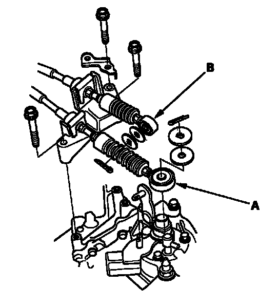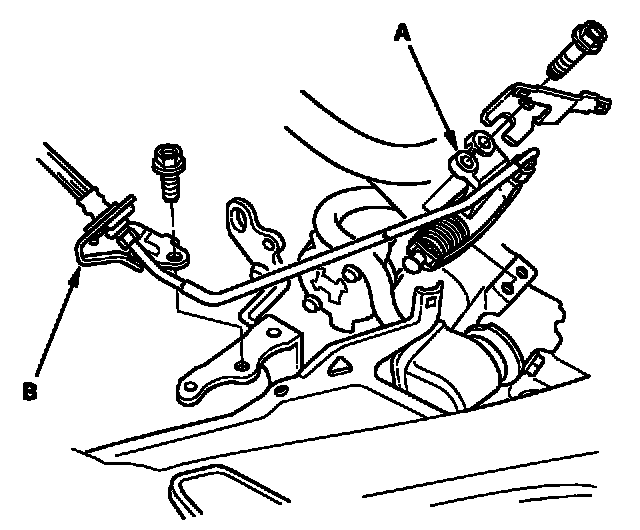 9. Remove the shift cable (A) and select cable (B) (M/T).
