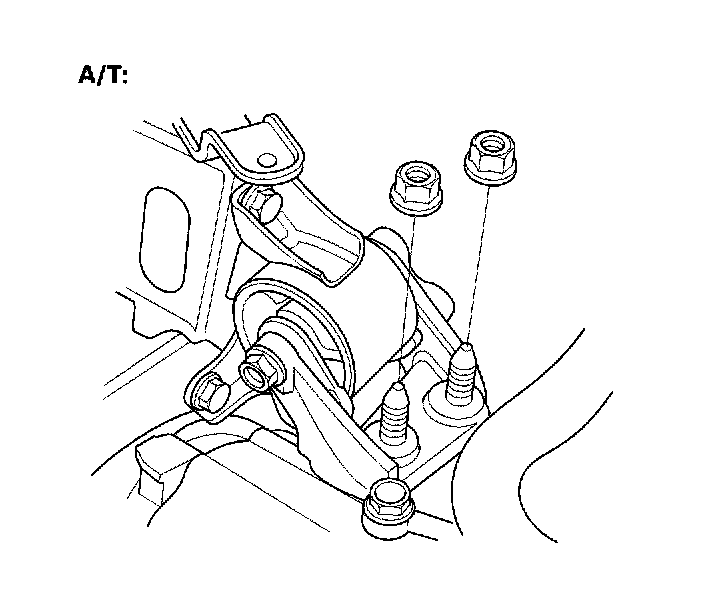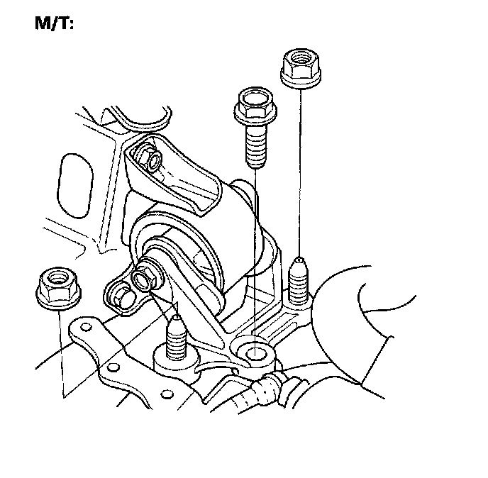 7. Tighten the transmission mount bracket mounting bolt/nuts.