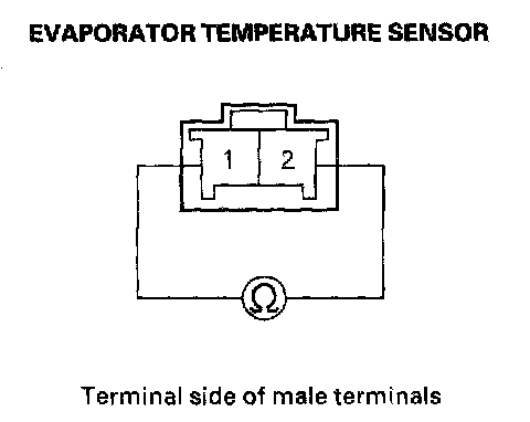 Evaporator Temperature Sensor Test1. Dip the sensor in ice water, and measure the resistance between its terminals.