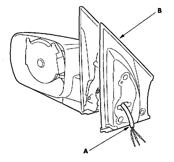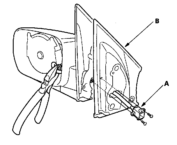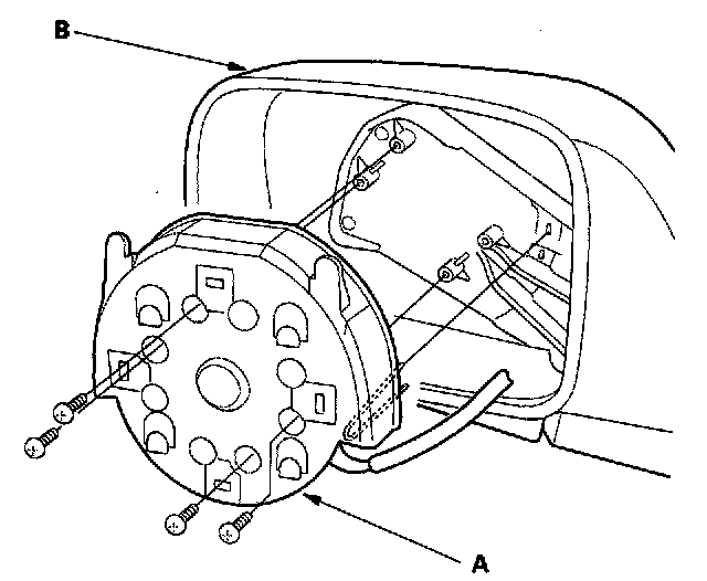 5. Remove the four Torx screws and separate the actuator (A) from the mirror housing (B).