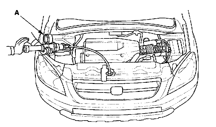 3. Attach a commercially available pressure tester (A) to the radiator, and apply a pressure of 93 - 123 kPa (0.95 - 1.25 kgf/cm2, 14 - 18 psi).