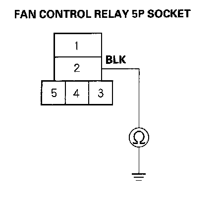 5. Check for continuity between the No. 2 terminal of the fan control relay 5P socket and body ground.