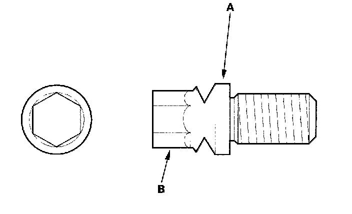 7. Tighten the shear bolts (A) until the hex heads (B) twist off.