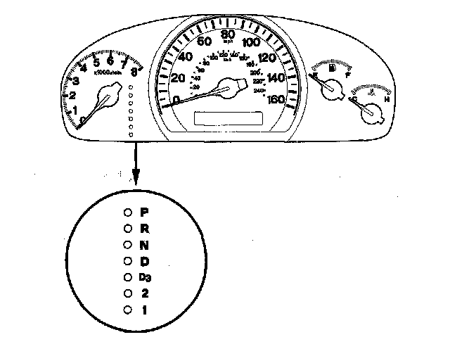 25. Move the shift lever to each position, and verify that the A/T gear position indicator follows the transmission range switch.