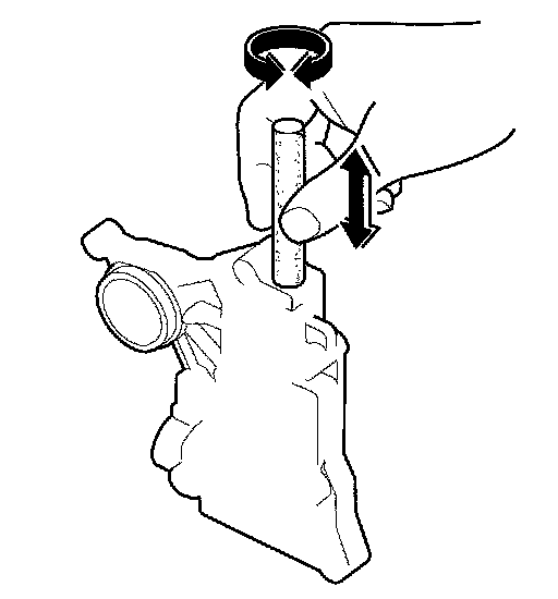 4. Roll up half a sheet of ATF-soaked # 600 paper and insert it in the valve bore of the sticking valve. Twist the paper slightly, so that it unrolls and fits the bore tightly, then polish the bore by twisting the paper as you push it in and out.