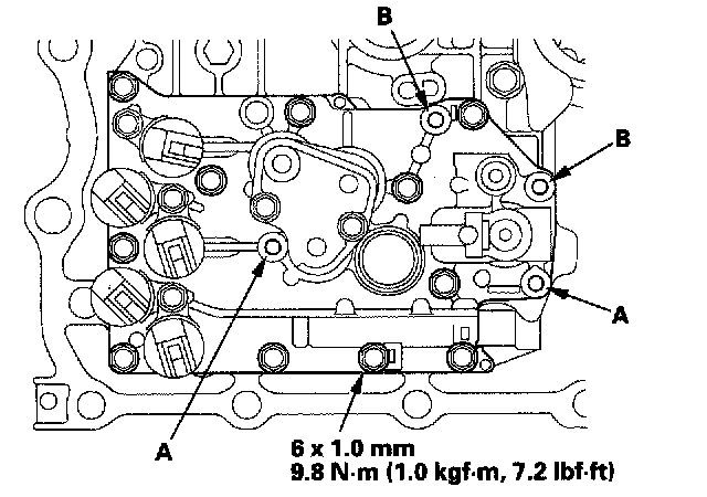 Valve Body and ATF Strainer Removal1. Remove the ATF feed pipes (A) and ATF joint pipes (B).
