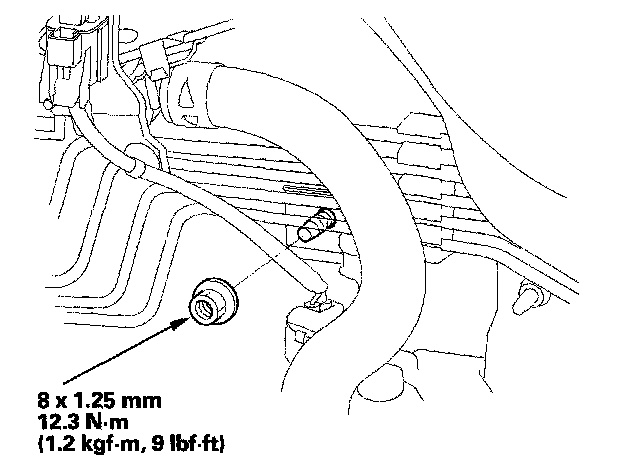 7. Remove the mounting nut from the heater unit. Take care not to damage or bend the fuel lines and the brake lines, etc..