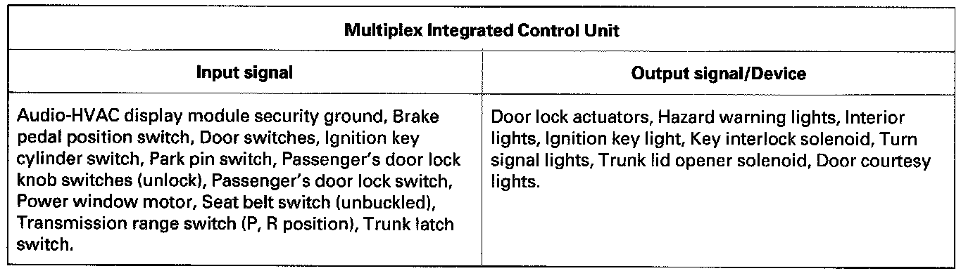 7. The multiplex integrated control unit (MICU), relay control module and gauge control module expect to receive the door lock switch signal, but since there is a break in the communication circuits, it is not received.
