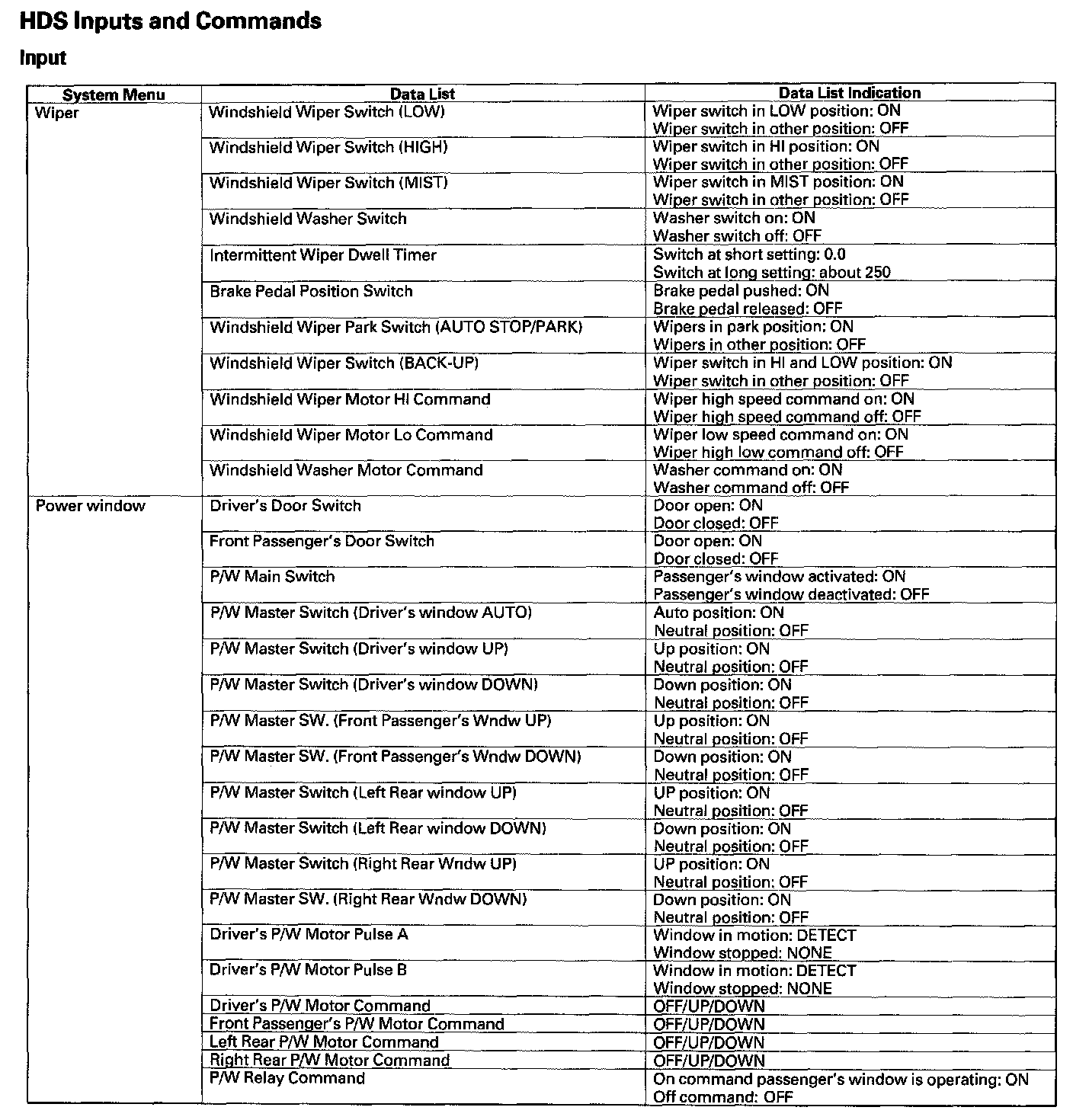 HDS Inputs And Commands - Output: