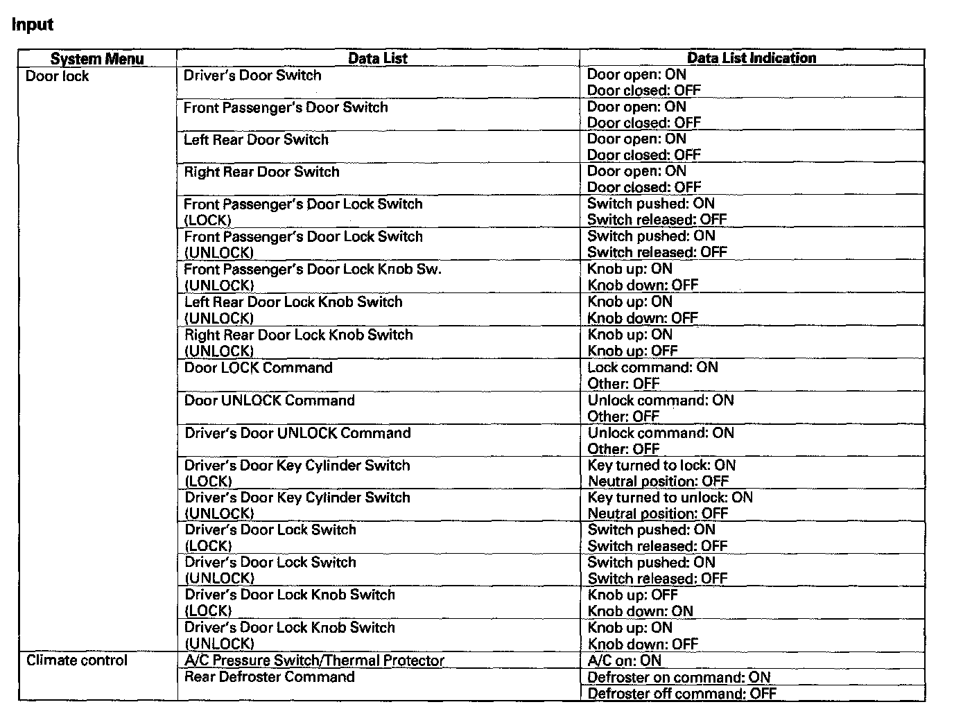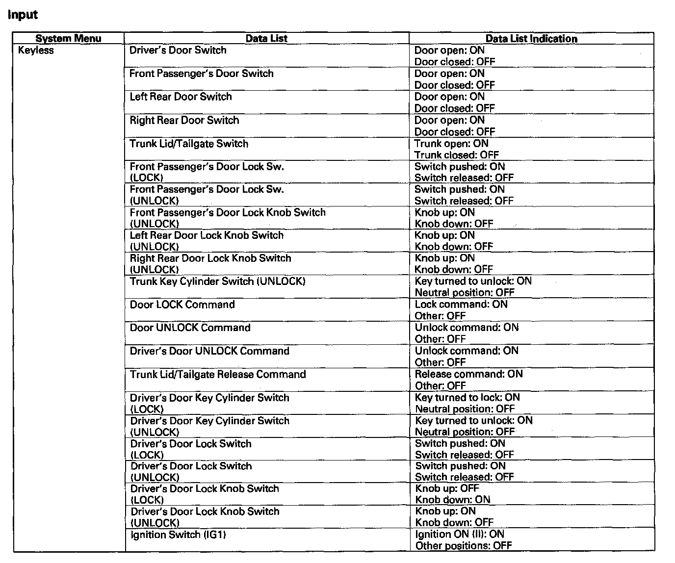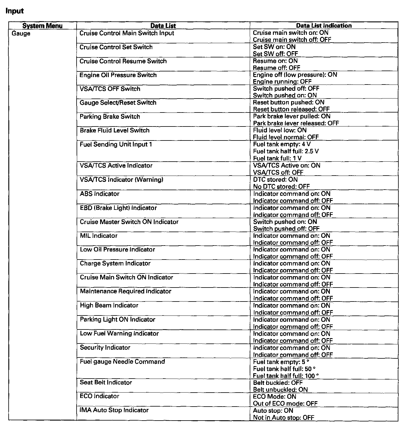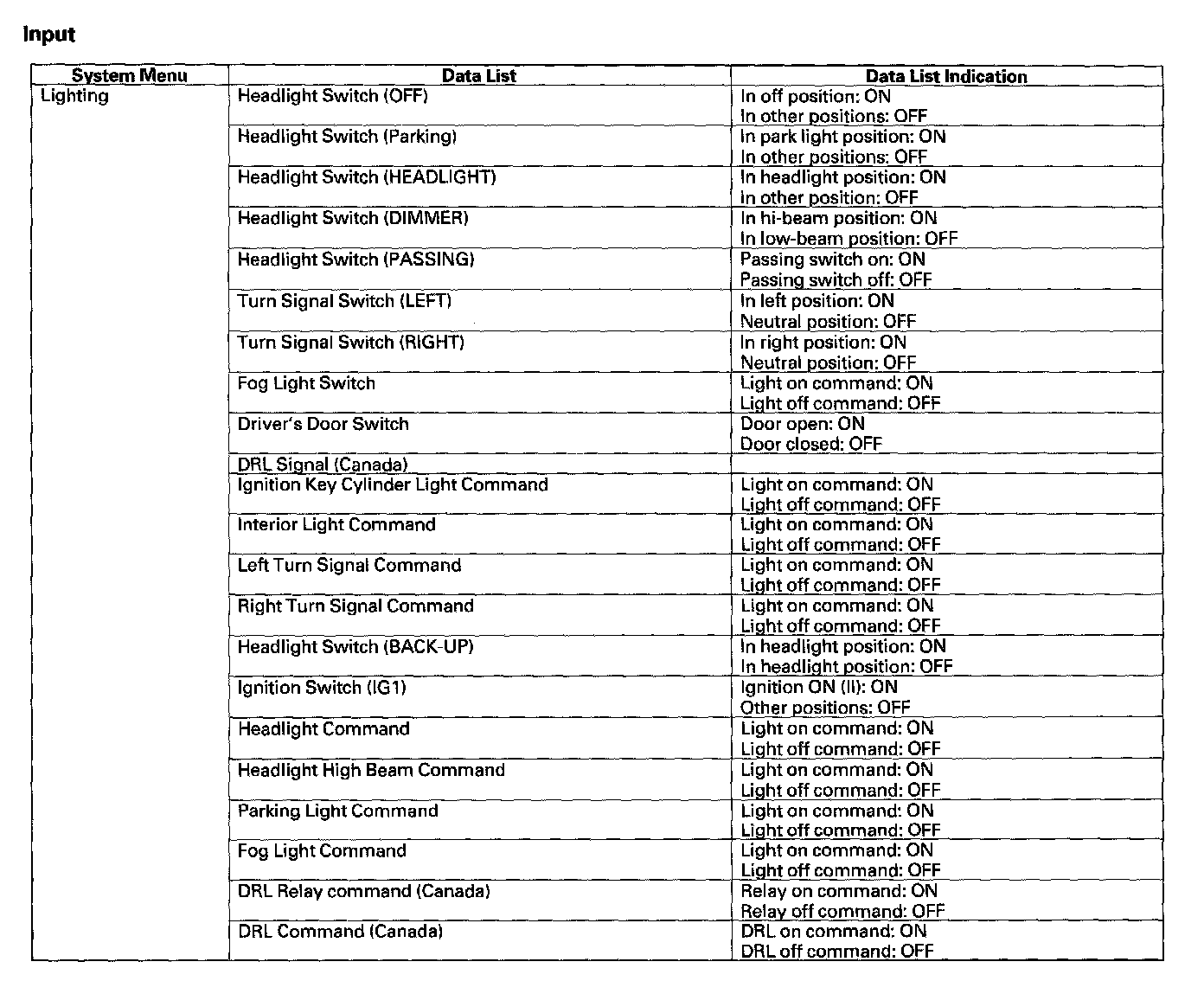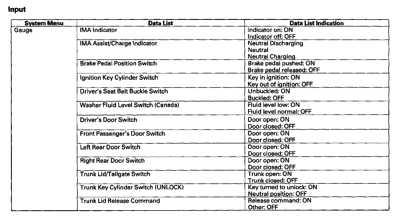 Pinout Values and Diagnostic Parameters