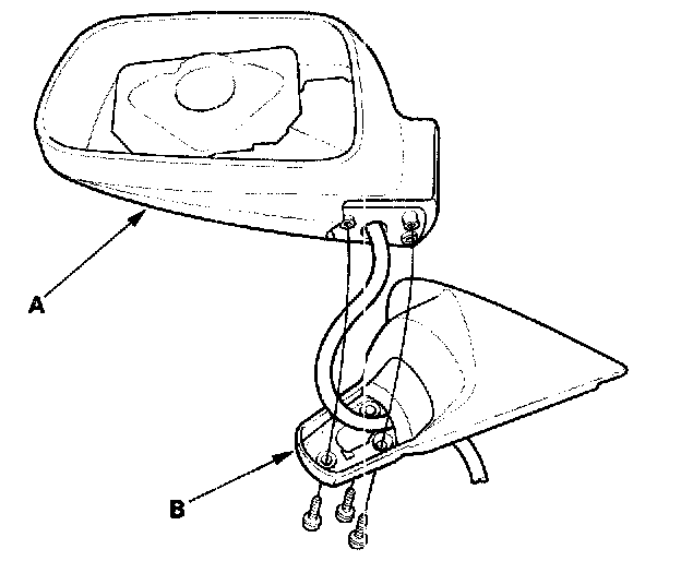 7. Remove the three screws, and separate the mirror housing (A) from the bracket (B).