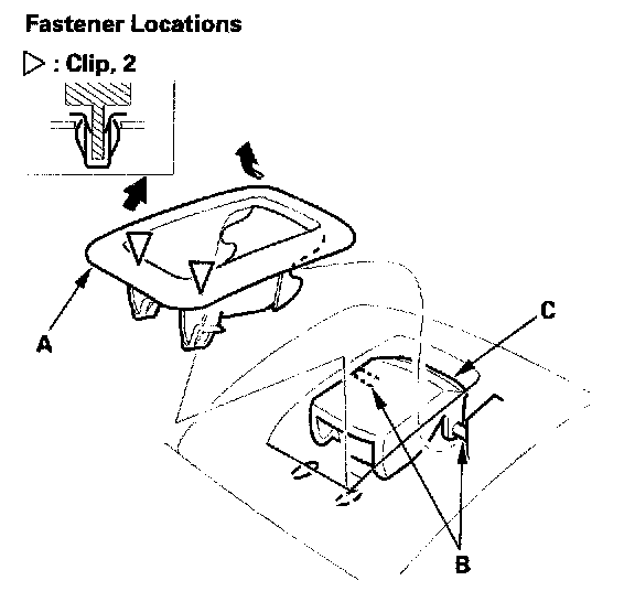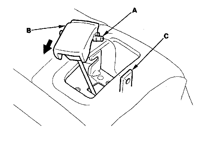 4. Release the pivot pin (A) of the latch lever (B) from the seat-back frame (C), then remove the latch lever by pulling it up.