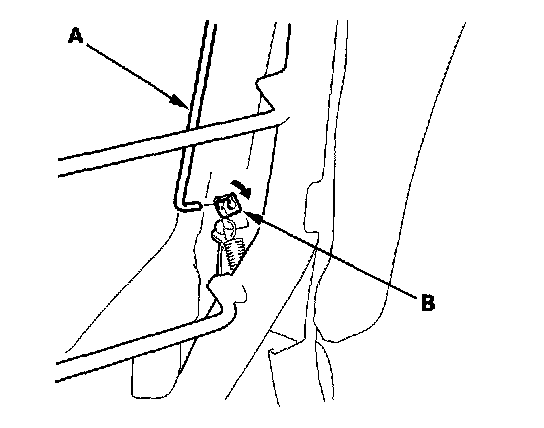 3. Disconnect the lock knob rod (A) from the outer recline adjuster (B).