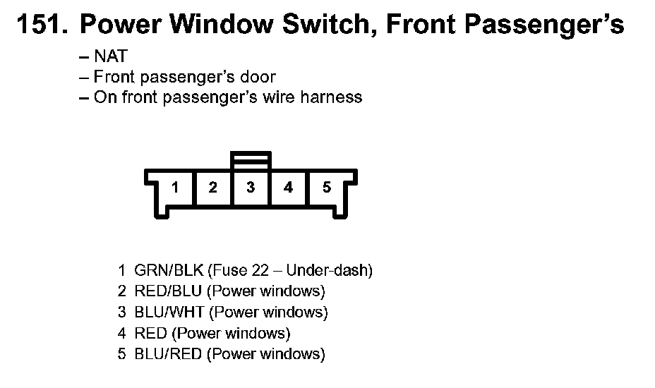 151. Power Window Switch, Front Passenger's: