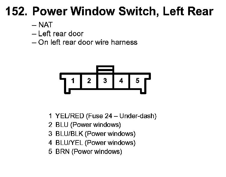 152. Power Window Switch, Left Rear:
