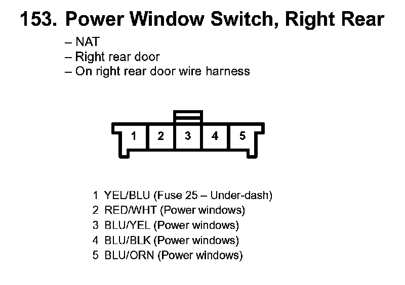 153. Power Window Switch, Right Rear: