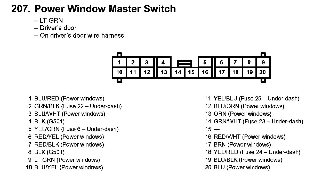 207. Power Window Master Switch: