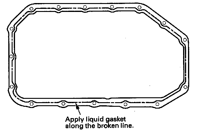3. Apply liquid gasket, P/N 08717-0004, 08718-0001, 08718-0003, or 08718-0009, evenly to the engine block mating surface of the oil pan and to the inner threads of the bolt holes.