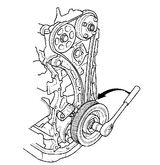 14. Turn the crankshaft counterclockwise to compress the auto-tensioner.