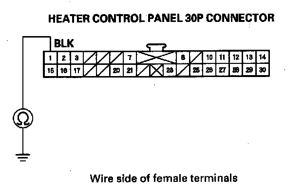 6. Check for continuity between the No. 1 terminal of the heater control panel 30P connector and body ground.
