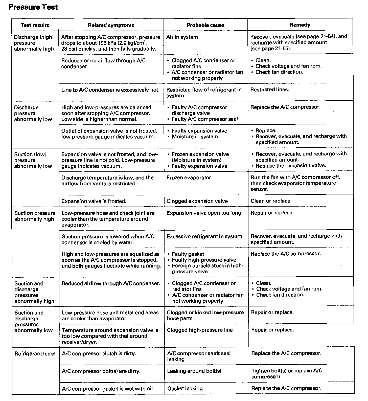 A/C System Test - Pressure Test: