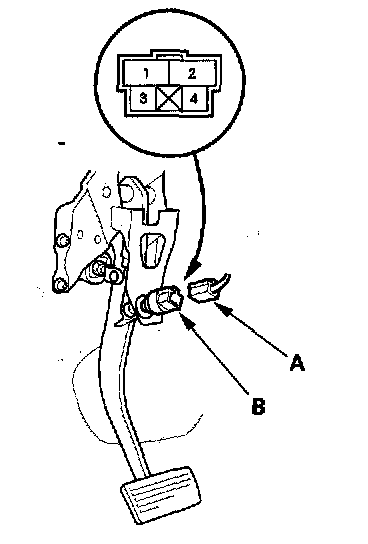 2. Disconnect the 4P connector (A) from the brake pedal position switch (B).