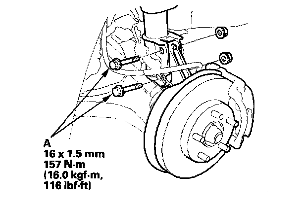 7. Replace the damper pinch bolts with the adjusting bolts (A), and adjust the camber angle.