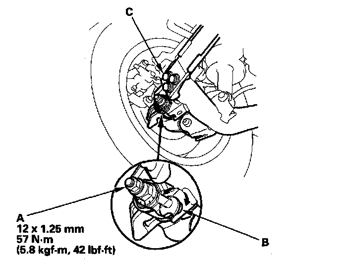 NOTICE: Do not loosen the special bolts (C) on the trailing arm.
