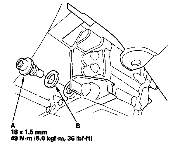 5. Reinstall the drain plug and a new sealing washer (B).