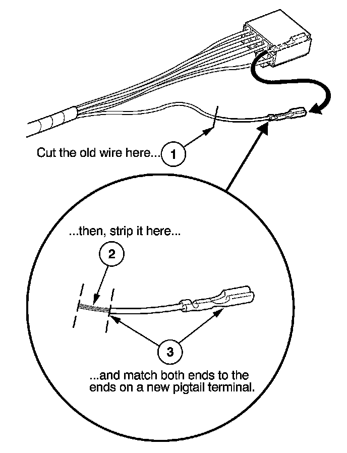3. Select a pigtail terminal that matches the original wire at both ends (same kind of terminal and same diameter bare wire).
