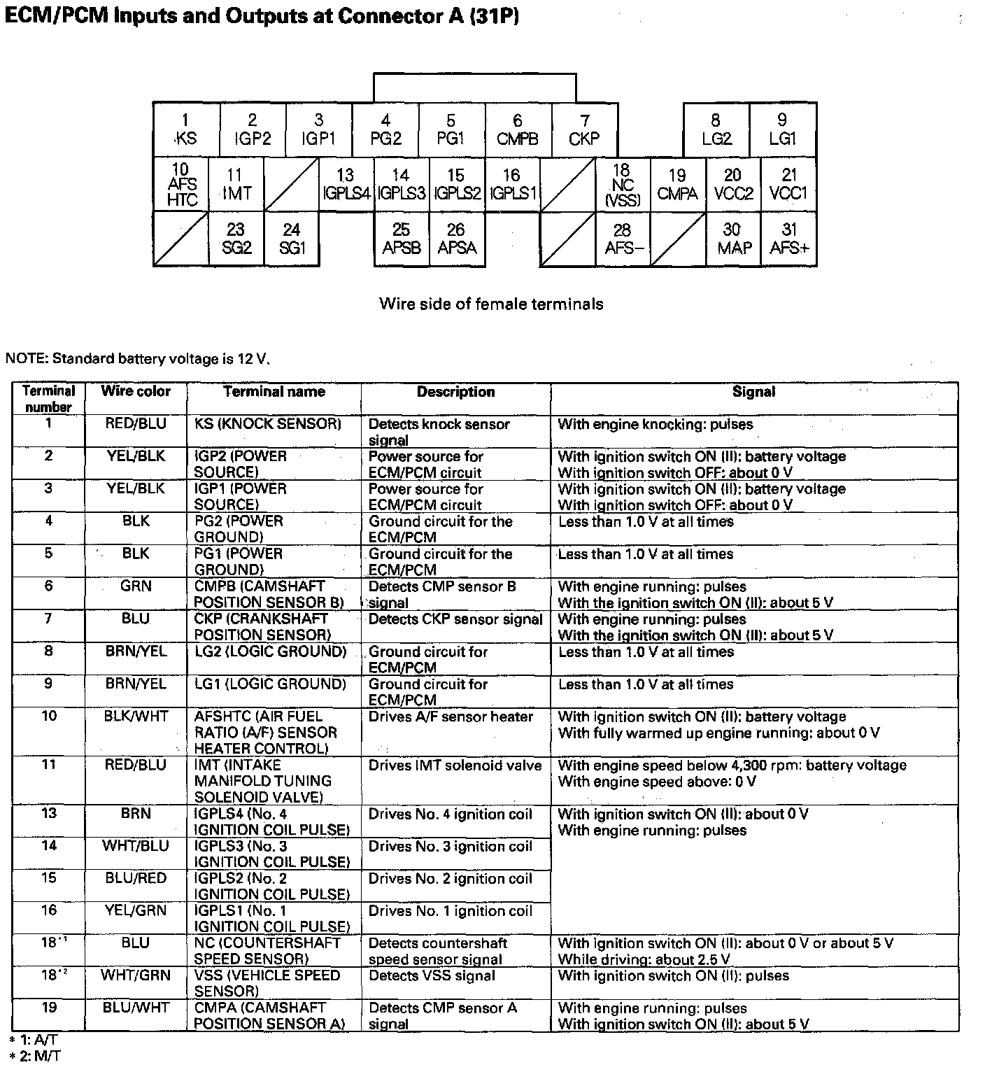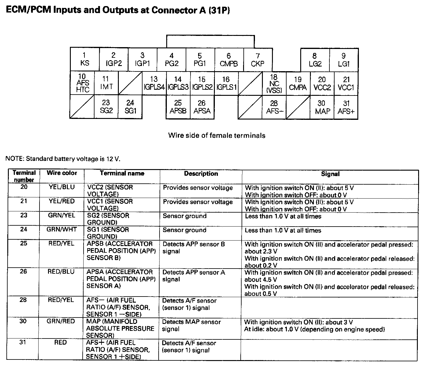 ECM/PCM Inputs And Outputs At Connector A (31P):