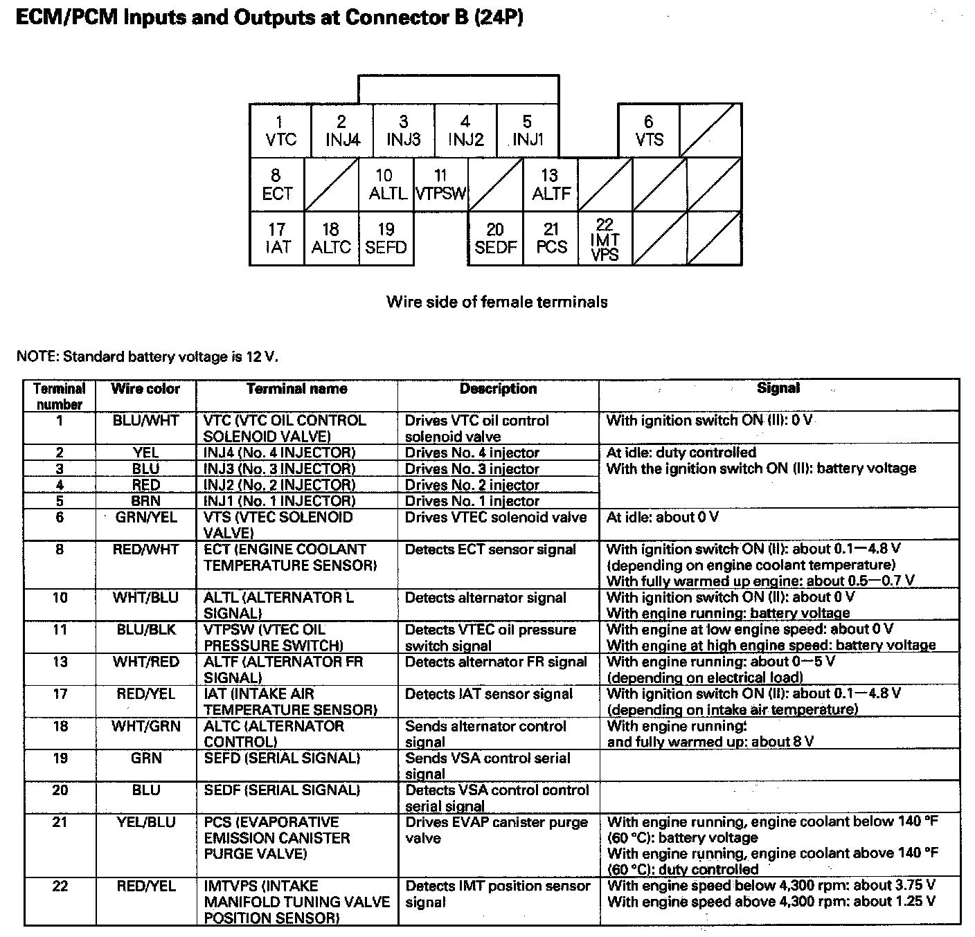 ECM/PCM Inputs And Outputs At Connector B (24P):