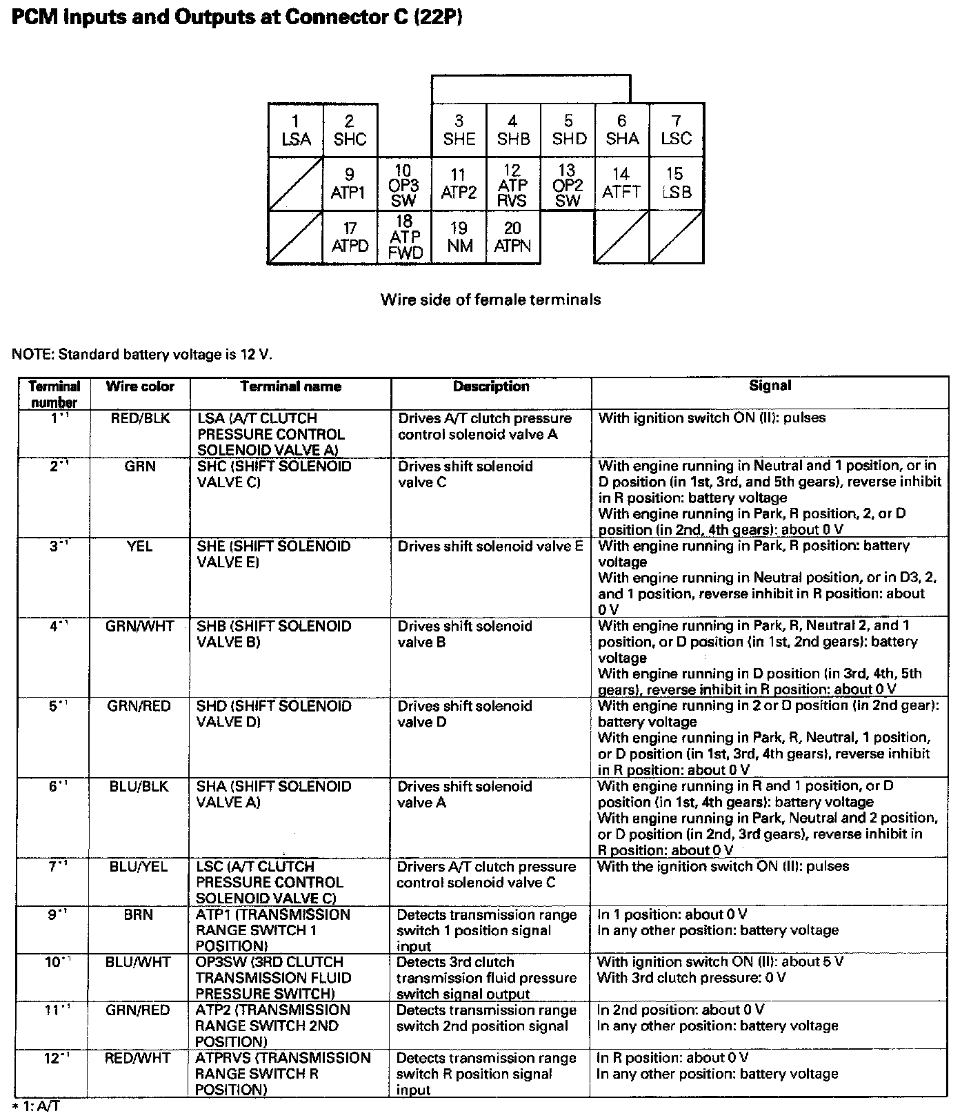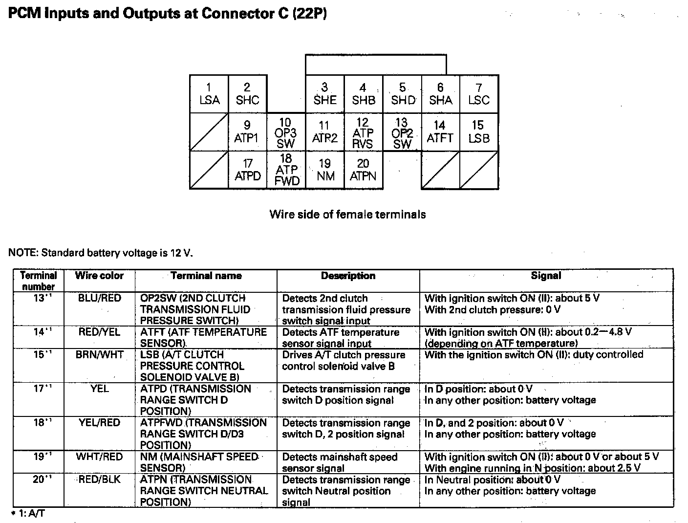 PCM Inputs And Outputs At Connector C (22P):