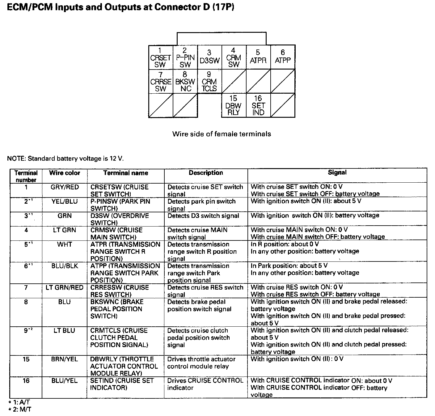 ECM/PCM Inputs And Outputs At Connector D (17P):