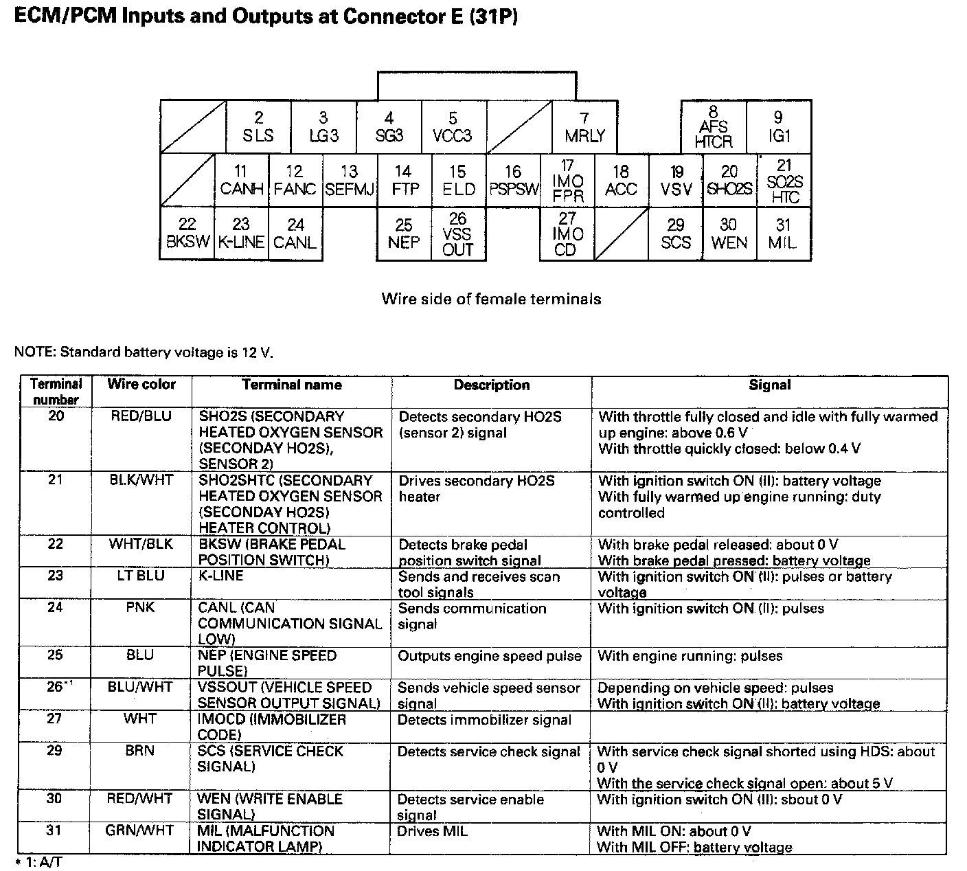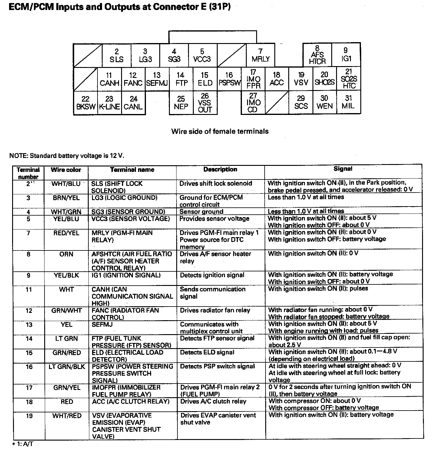 ECM/PCM Inputs And Outputs At Connector E (31P):
