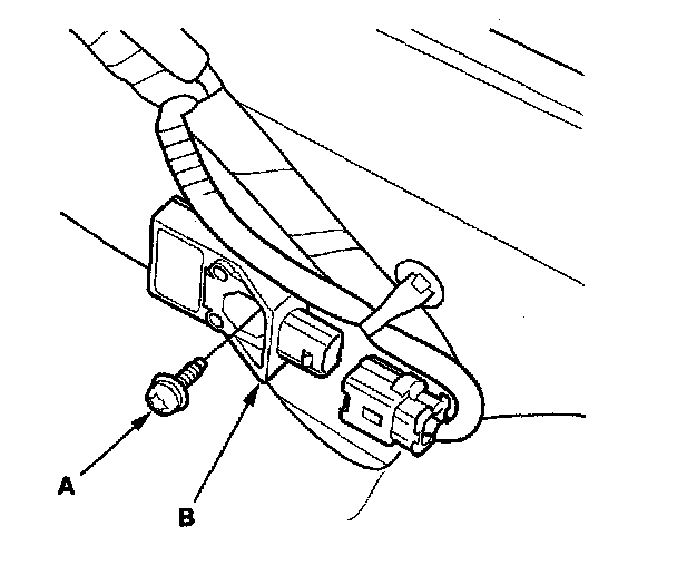 6. Using a Torx T30 bit, remove the Torx bolt (A), then remove the side impact sensor (first) (B).
