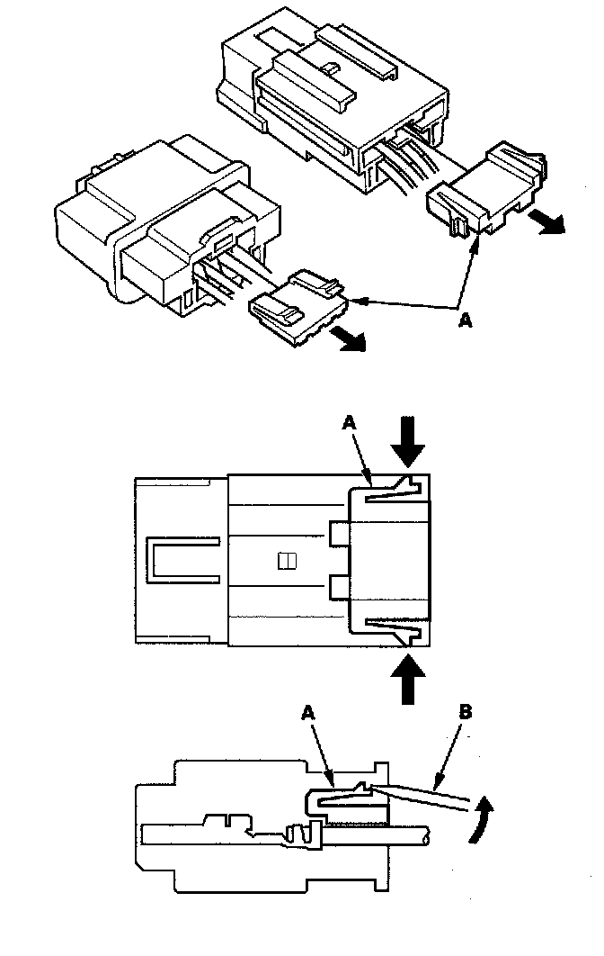 NOTE: It is not necessary to reinstall the removed retainer; the terminals will stay locked in the connector housing.