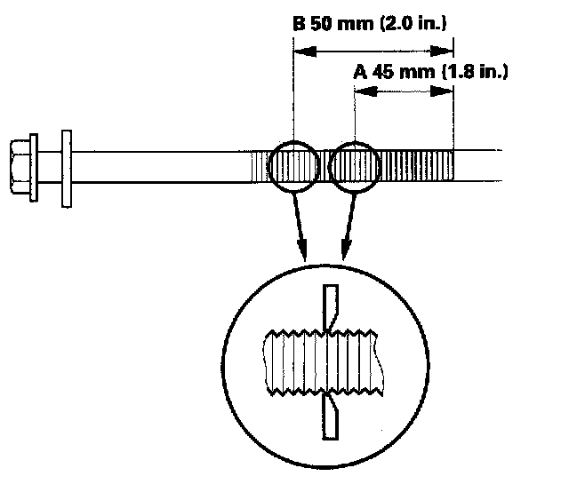 If either diameter is less than 10.6 mm (0.42 inch), replace the cylinder head bolt.