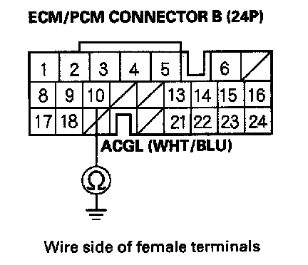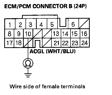 18. Check for continuity between ECM/PCM connector terminal B10 and body ground.