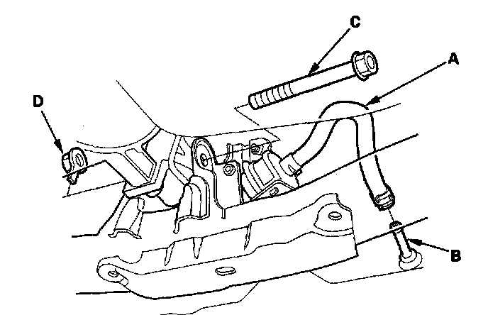 27. Remove the front mount bolt (C) and nut (D).