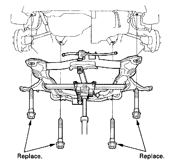32. Remove the four subframe mounting bolts, then lower the subframe.