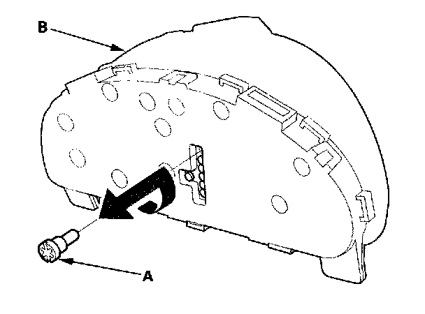 Replace the bulb (A) in the gauge assembly (B).