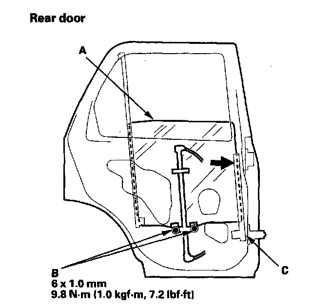 4. Push the glass against the channel (C), then tighten the glass mounting bolts.