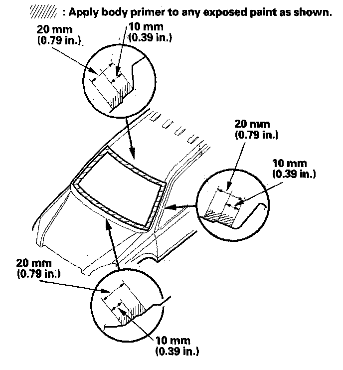 - Never touch the primed surfaces with your hands. If you do, the adhesive may not bond to the windshield properly, causing a leak after the windshield is installed.
