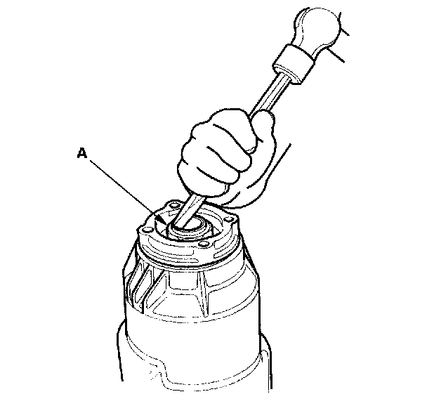2. Raise the locknut tab (A) from the groove of the clutch guide, making sure the tab completely clears the groove to prevent damaging the clutch guide.