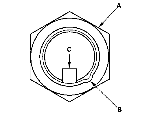 5. Tighten the locknut (A) until its tab (B) aligns with the groove (C).